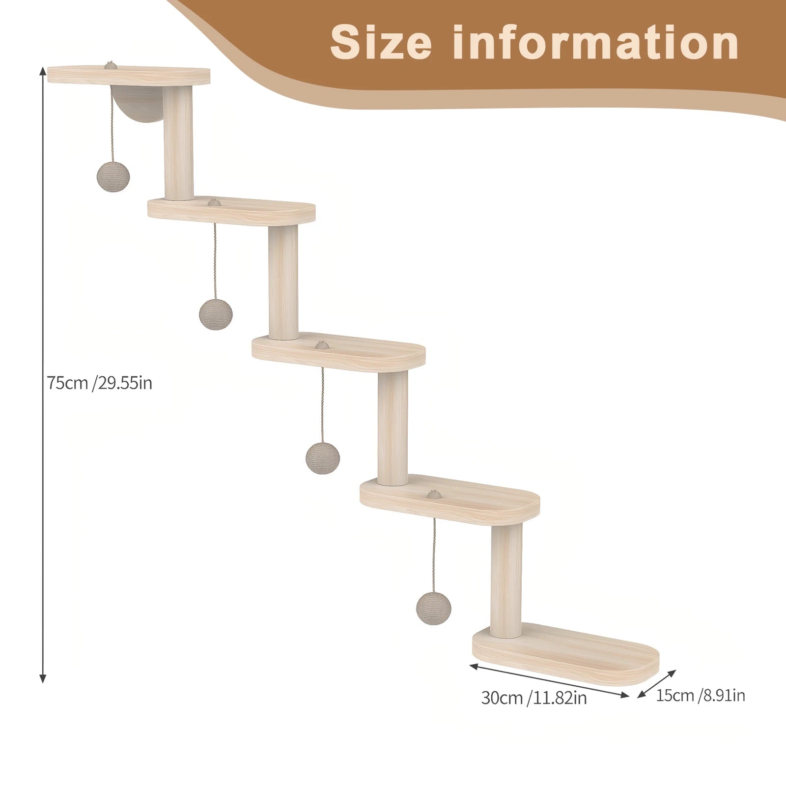 Wall Mounted Wooden Cat Climbing Frame Cat Wall Furniture Corner Climbing Shelf with 5 Step Wooden Cat Ladder Frame for Sleeping Playing Climbing Features: 1.Sturdy and Long-Lasting: Our cat wall furniture corner climbing shelf is crafted from premium wood panels, designed to withstand playful cats up to 12kg. It offers a sturdy and lasting platform for endless feline fun in your home. 2.Comfortable Climbing Frame: Featuring a high-quality sisal scratching board, this wooden cat climbing frame provides a cozy and slip-resistant surface. Smooth, burr-free edges ensure safety for both large cats and kittens. 3.Space-Saving Design: The wall-mounted cat climbing shelves are ideal for compact living spaces, giving your cat an elevated environment to climb, perch, and scratch without taking up valuable floor area. 4.DIY Creative Combinations: With abundant accessories, you can freely configure and install the wooden cat ladder frame to suit your wall layout and your cat's preferences. Adjust the setup to optimal jumping heights for more excitement. 5.Easy Assembly: These cat wall steps shelves are simple to install and come with all required hardware. Pre-drilled holes make secure wall mounting quick and hassle-free, creating an ideal wall-mounted climbing experience. Specification: Product size: 30*15*75cm (length of a board*width*maximum height of the product) Material: pine Name: Five-layer ball dribbling solid wood cat climbing frame Item number: Cat climbing frame Note: ![]() 1 set X cat crawler |