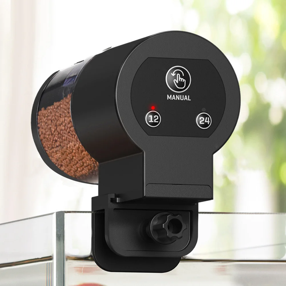 - Moisture-proof 100 ml reservoir keeps food dry and clog-free for flakes, pellets, powder, or strips, with easy wall-mount or lid attachment.